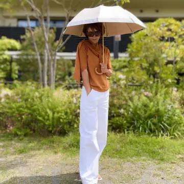 年々暑さが増す昨今、日焼け防止になるだけでなく暑さも軽減してくれるとして、注目を集めているのが「完全遮光日傘」。特殊な構造の生地が、紫外線だけでなく、赤外線、可視光線まで100%カットする。今回は、そんな完全遮光日傘を愛用するエクラ 華組3名をスナップ!