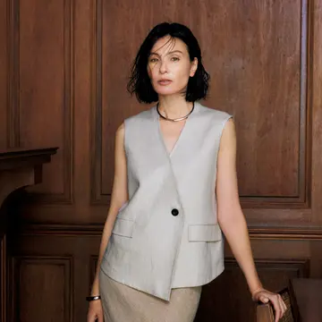 オーバーサイズのシャツも、コットンシルクのシアー素材なら女性らしい気品が漂って。カーゴパンツはサテン素材を選ぶと、ぐっとスタイリッシュな印象に。両者に共通する都会的な色香が、ベージュのワントーンとリッチに調和して。