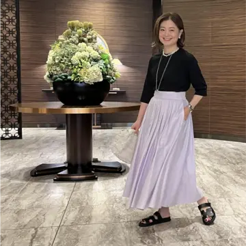 「今年はこのツバつきハットを購入しました。大人ブランド、KIJIMA TAKAYUKIのものなので気持ちが落ち着きます♡ 程よく光沢があるなじみのいいベージュで、黒ワンピースとの相性もよし。折りたたみできるのも便利です」
