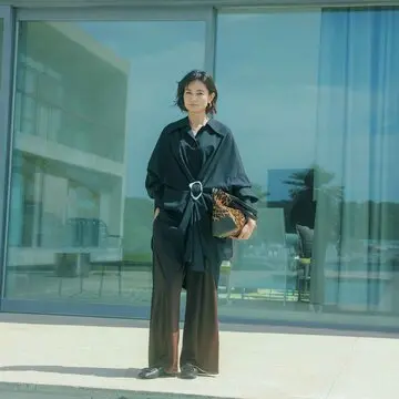 辛口の迫力が宿るタックパンツでマスキュリンなブラウンを堪能