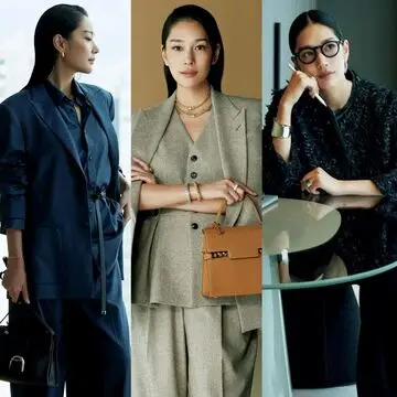 パンツ¥59,400/エイトン青山(エイトン) シャツ¥80,300/メゾン・ディセット(ダウェイ) サングラス¥61,820/ルックスオティカジャパン カスタマーサービス(オリバーピープルズ) ピアス¥96,800・ネックレス(ゴールド)¥206,800・(黒×ゴールド)¥162,800・バングル¥179,300/ホアキン・ベラオ バッグ¥495,000/ガブリエラ ハースト ジャパン(ガブリエラ ハースト) 靴¥161,700/ブルーベル・ジャパン[ファッション事業本部](マノロ ブラニク)