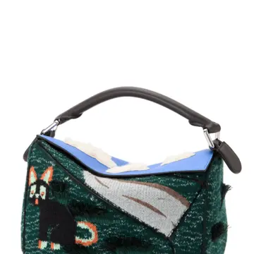 ロエベのシグネチャーバッグは、インターシャや刺繍、プリント、トロンプルイユ ニットによる猫モチーフをまとって登場します。