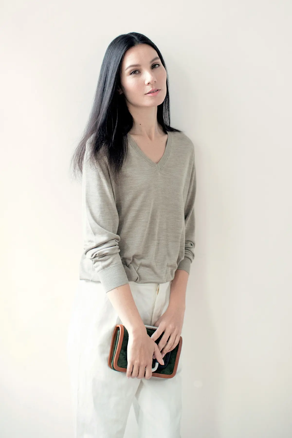 ジャケット¥145,000/マディソンブルー(マディソンブルー) ニット¥29,000/スローン(スローン) パンツ¥29,000/アングローバル(マーガレット・ハウエル) バッグ¥117,000/ピエール アルディ 東京(ピエール アルディ)
