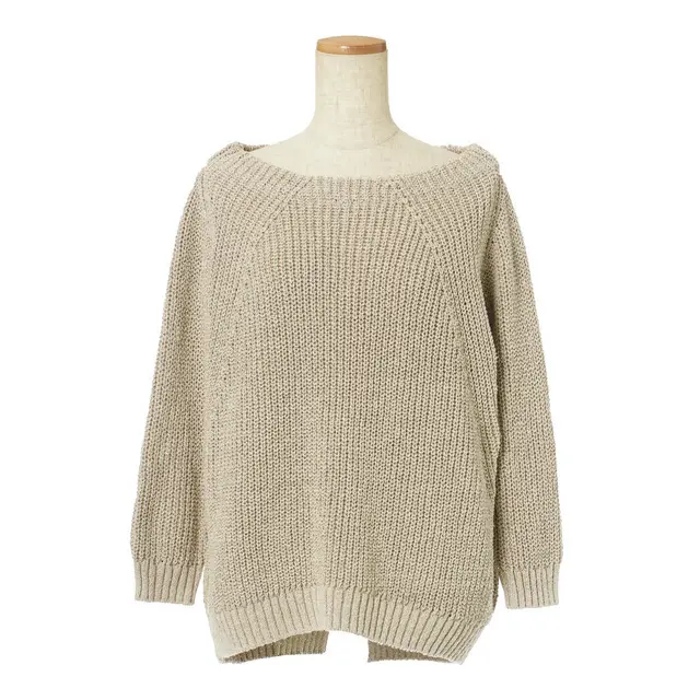「『ドゥーズィエム クラス』が得意とするベージュのアイテムを、素材のニュアンスの違いで魅せたら大人らしいムードが出せるなと思い描いて別注したのが、このニットとスカートです。ニットはシルクリネンのざっくり感が素敵。少し後ろ下がりで大人の体をきれいに見せてくれます。マキシスカートはすっきり見えをかなえるギャザーの入り方が秀逸! あえて腰位置ではくことで、おなかまわりをカバーしつつ、縦長ラインを強調する仕上がりに。」(村山さん)