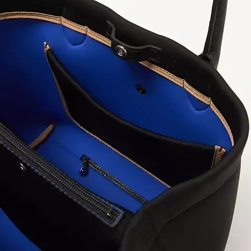 コンサートのとき、膝の上にすっと収まるこのサイズ感が本当に便利。驚くほど軽いのに収納力があり、深いブルーの内装のおかげで中が見やすく、「あれがない!これがない」とならずに、必要なものをスマートに取り出せます。軽やかな素材にレザーの上質感がほどよく映えて、手にしたときの佇まいまできれいに見えます。