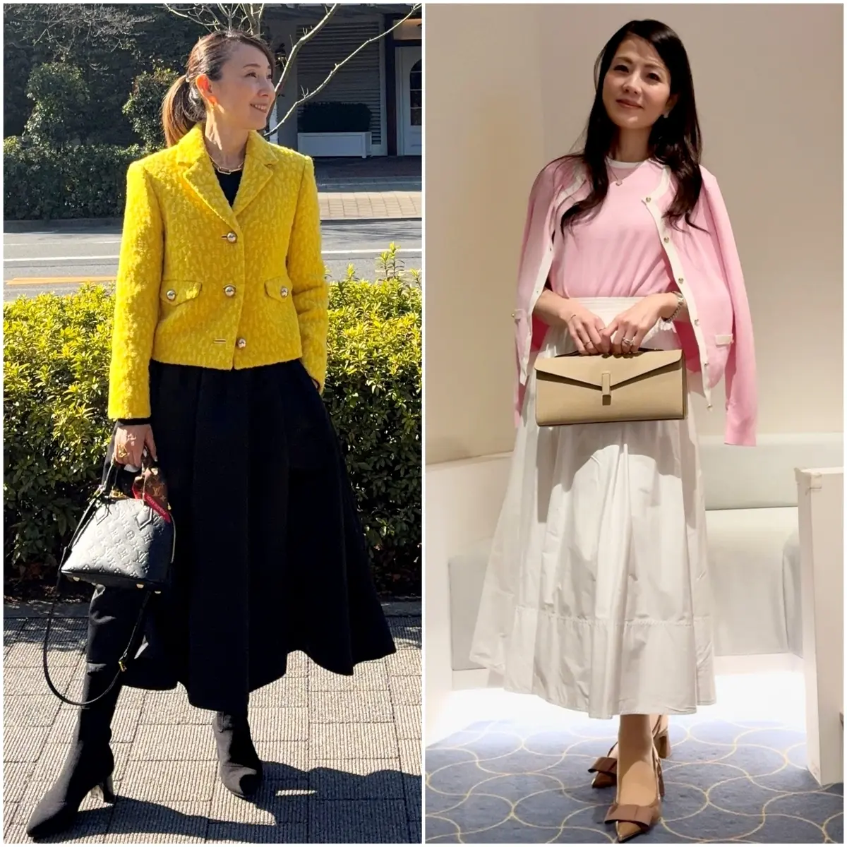 ファッションジャーナリスト・藤岡篤子さんも、軽やかなトレンドに注目。「この春は『エアリー』な感じが気になります。ロマンティックな香りを残しながら、大げさなフリルやボリュームはなく、風をはらんだような仕立てや軽やかな着こなしが新鮮。定番の堅苦しさが消え、自由なフォルムが戻ってきました。カラーは時代の気分も映し出し、ミントグリーンやシェルピンクなど清潔感のあるクールパステルが主役で、春の気配が漂います」