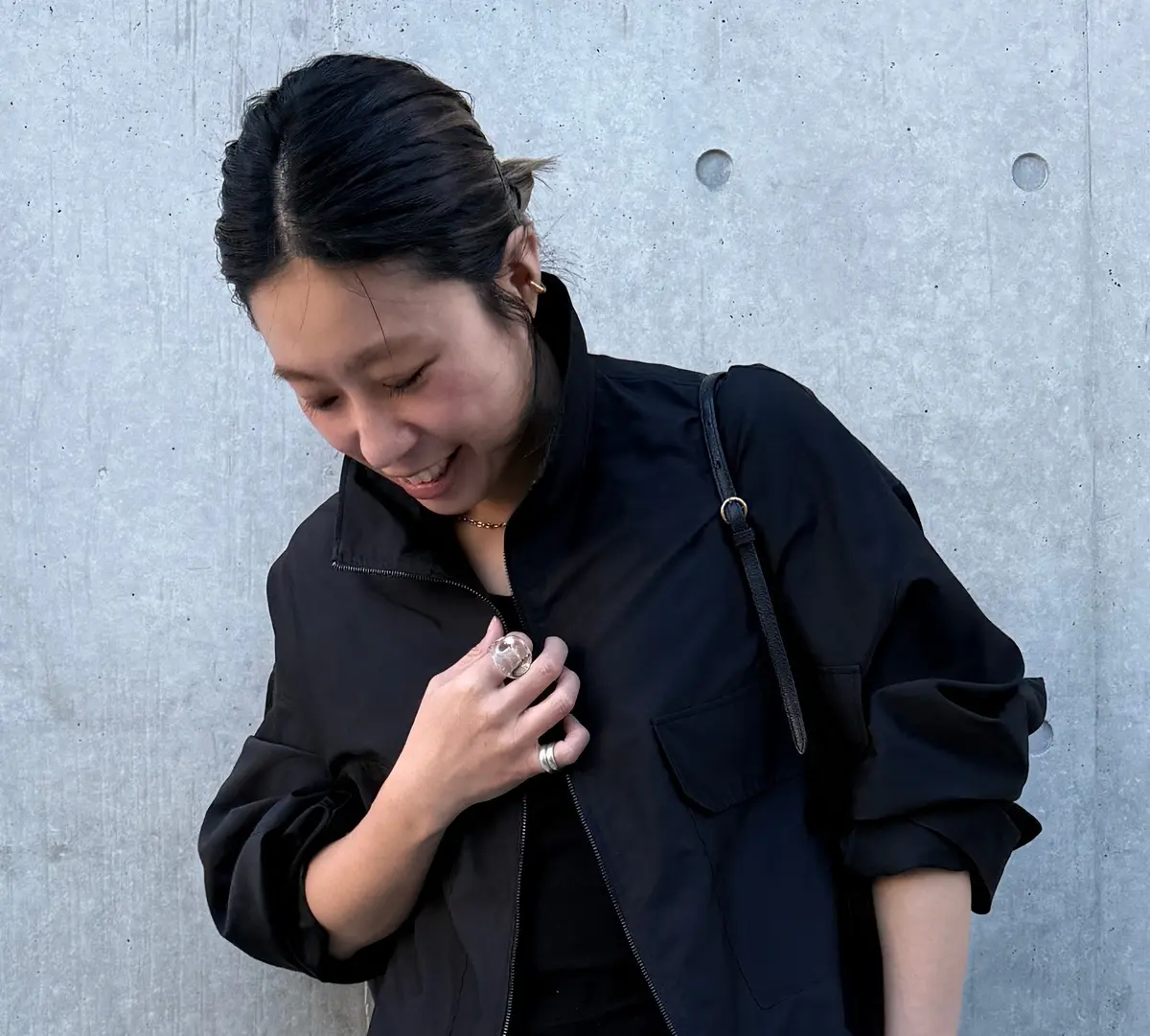 「ハルノブムラタの服はゆるやかなシルエットで包み込むものが多く、着る人の体型を選ばず、大人の素敵なところを引き出してくれます。このジャケットも自由なアレンジが楽しめて、リアルクローズとして優れながら上品さも兼ね備えています。1着持っているとコーデの幅が広がる、汎用性が高いジャケットです」