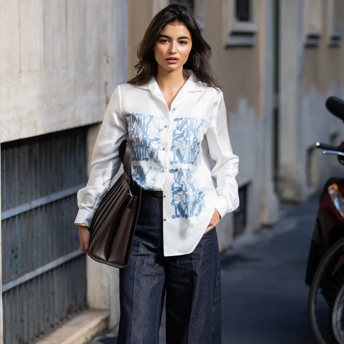 「デニムはどうしても平面的に見えるものが多いのですが、ステッチを入れることで立体感が生まれ、レッグラインをすっきりと見せることに成功しています。ユニークなボトムなので、ブラウスやヒールなどエレガントなアイテムを合わせるのが鉄則。かっこよく履いていただきたいですね」