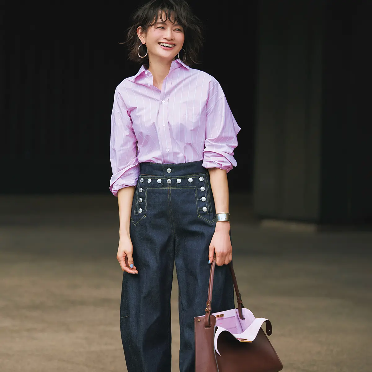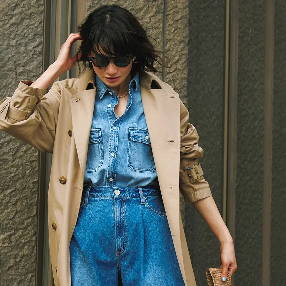「年齢を重ねれば、体型に気になるところが出てくるのは自然なこと。トレンドをキャッチしながらも、似合ってこそ、自分にとって素敵なデニムになると思います。少しワイドな、余裕を持って履けるシルエットでありながら、ひと癖あるデザインのデニムをセレクトしました」(大谷玲奈さん、以下省略)。