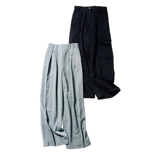 「張りの強い素材や足もとに重みがたまりやすい超ワイドは、自分の脳内イメージよりスタイルを悪く見せるし、迫力が出すぎることに気づきました(笑)」