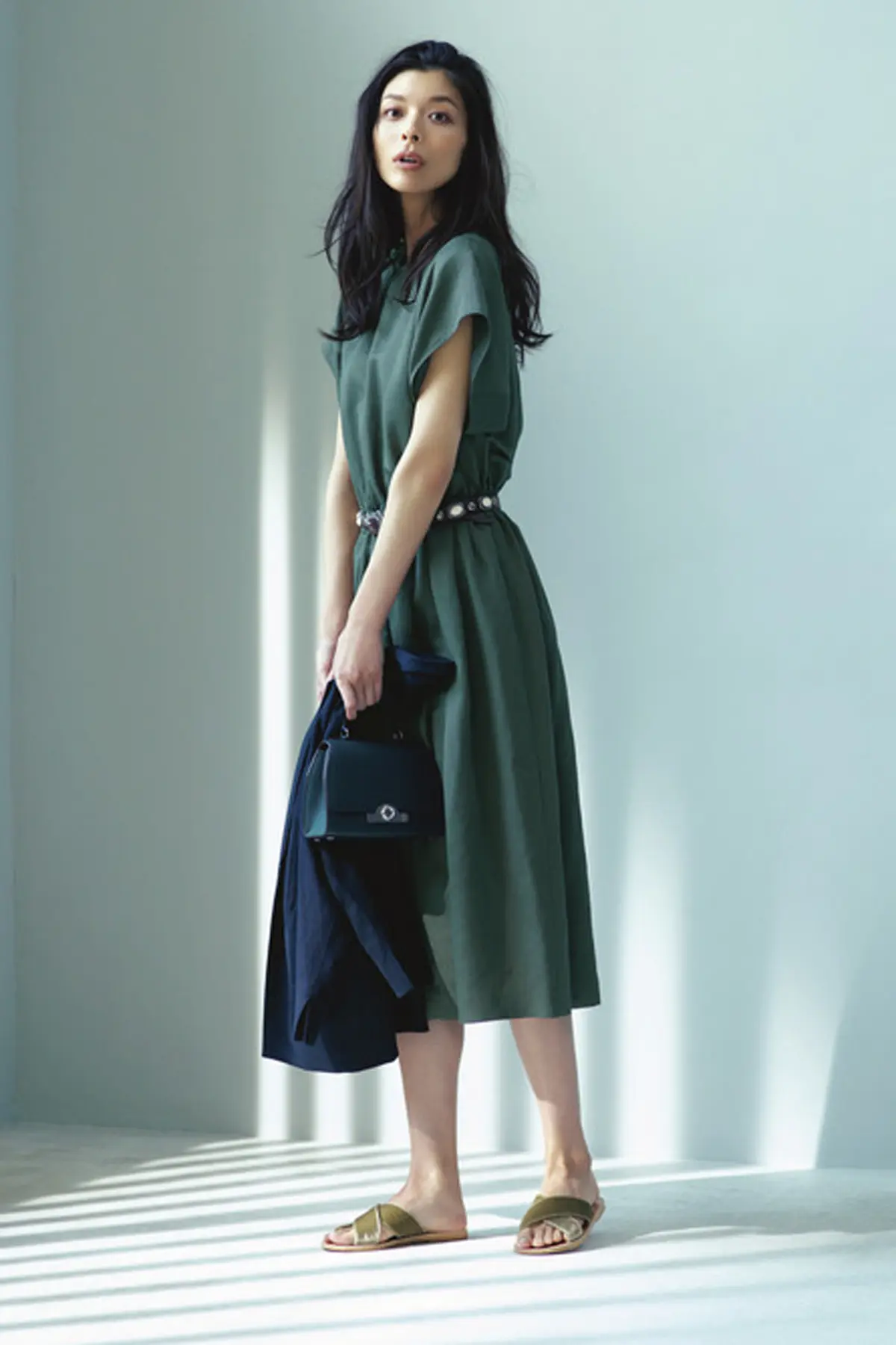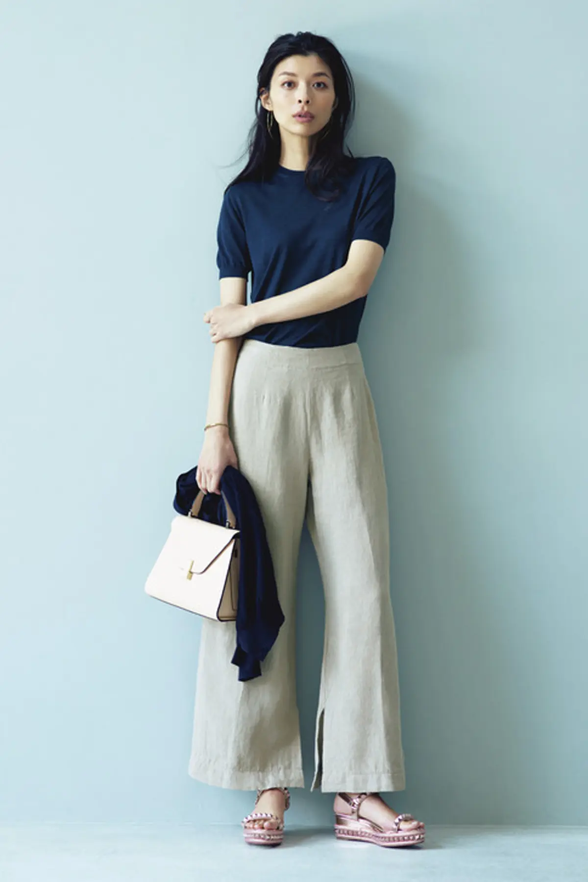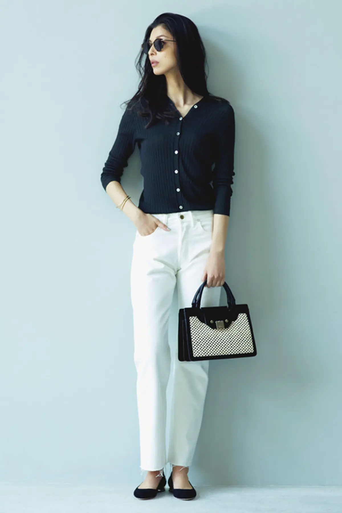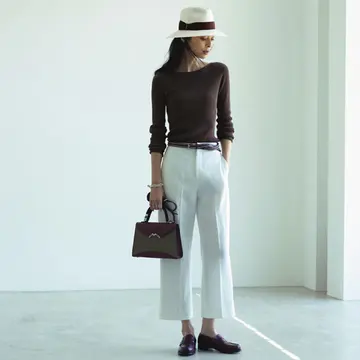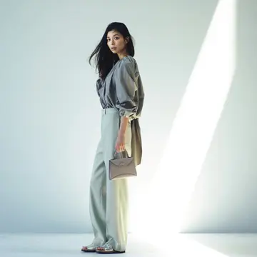 「私のつくるコーディネートはきれいめなベーシック。クラシックなデザインのバッグとフラットシューズで肩の力を抜いたステキが目標」。“ひとひねり服” + “きれいめバッグ”+“ハズし靴”で簡単に手に入る。