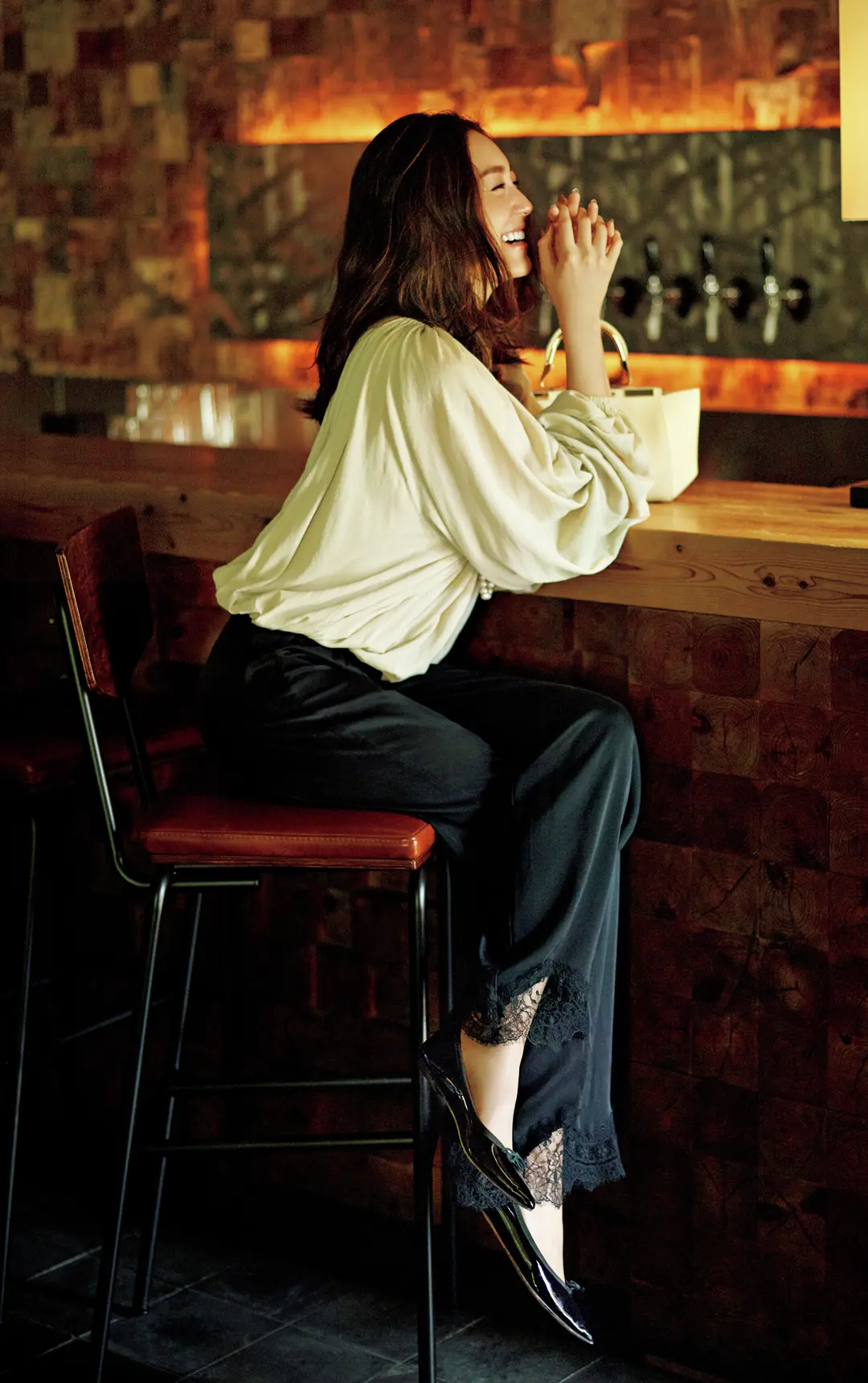 女性にとって靴は、スイーツみたいだなあ、と思います。そう、何足あっても「新しいタイプ」や「美しいデザイン」「心惹かれる色」は、いつもベツバラ。けれど、すべてをまんべんなく登場させることはなくて、結局頼ってしまうのは“同じ一足”だったりします。私の場合は「黒のバレエシューズ」。さらに“エナメル素材”、しかも“ポインテッド”であれば、パーフェクト!“黒”は、昼夜を問わず、生活のシーンも選ばず使えるから。そして“エナメル”を選ぶ理由は、天候に左右されないから。微撥水(びはっすい)の特性が、毎日の予定には、絶対に必要なのです。雨の日に、おしゃれをすることを手放さずにすむのは、小さなストレスをひとつ減らすことに。そして“ポインテッドトゥ”の理由は、ボトムを選ばないから。九分丈のスティックパンツにも、ミモレ丈のカラースカートにも似合うし、リトルブラックドレスだって受け止めてくれるのです。朝は子供の学校の用事、そのあとは仕事で撮影と打ち合わせを何本か終えたら、夜の会食へ。なんていう、3つのまったく違うシーンに身を置くような一日が、実は頻繁にある私の日常。昼夜、すべての着こなしに、間に合わせの靴をなんとなく合わせている印象……それも残念だし、替え靴持参で荷物を増やすのも避けたいところ。そのリクエストに応えてくれるのが、パンプスやスニーカーでもサンダルでもなく、一足の「黒のバレエシューズ」なのです。