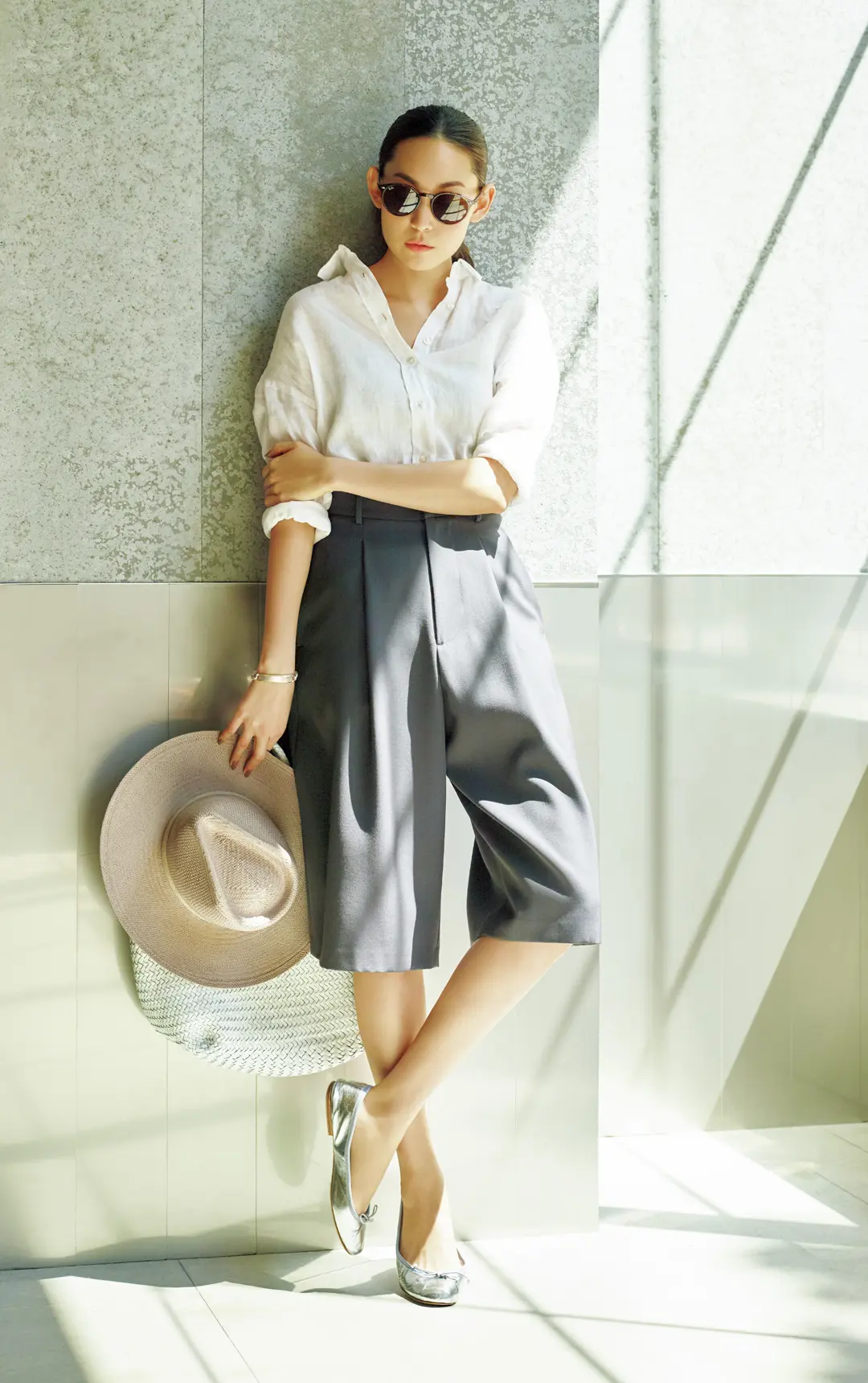 黒以外のバレエシューズを選ぶなら、大人はベーシックな色でシックに。なかでも、シルバー、ブラウン、白が3大人気カラー。
