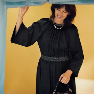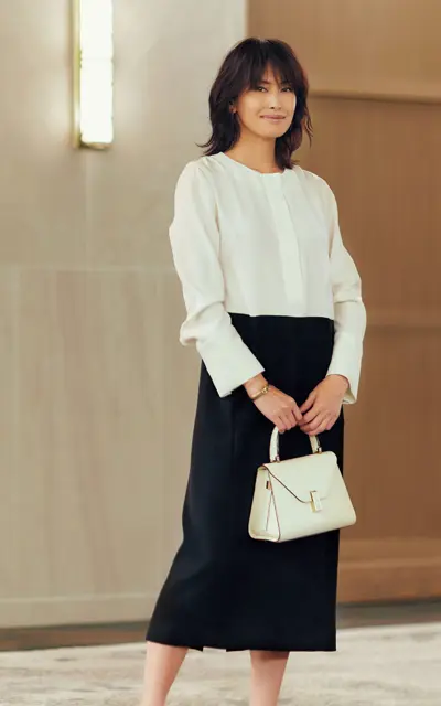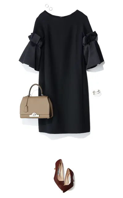 50代、一番のハレの日といってもいい同窓会には、一枚で即効性のある着映えワンピースが最善のチョイス。久しぶりに会うメンバーに“やっぱり素敵”と思わせるデザインをシチュエーション別にご紹介します。恩師から先輩、後輩までも集まるホテルでの立食パーティには、正統的な美フォルムが光るベーシックカラーのワンピースをチョイス。