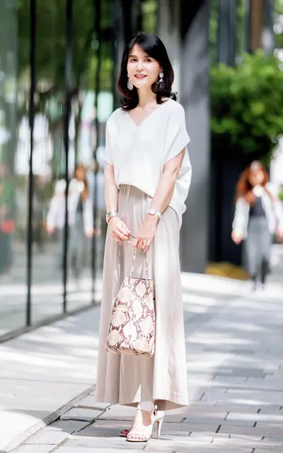 暑さが厳しい日々でも涼しくてきれい見えするアラフィー女性たちの着こなしを関東、関西別にお届け! 流行と自分らしさを組み合わせたアラフィースタイルは必見です。