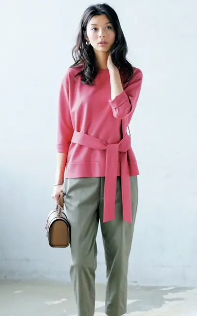 夏服にも飽きてきたら、新しい色を加えて鮮度をアップ! この秋注目の、こっくりとした濃密色をワンアイテムプラスするだけで、見慣れたいつもの着こなしが、ぐっと新鮮&シックに見えます。深みのあるラズベリーピンクは、ピンクから遠ざかっていた人も挑戦しやすく、大人の装いにぴったりです。