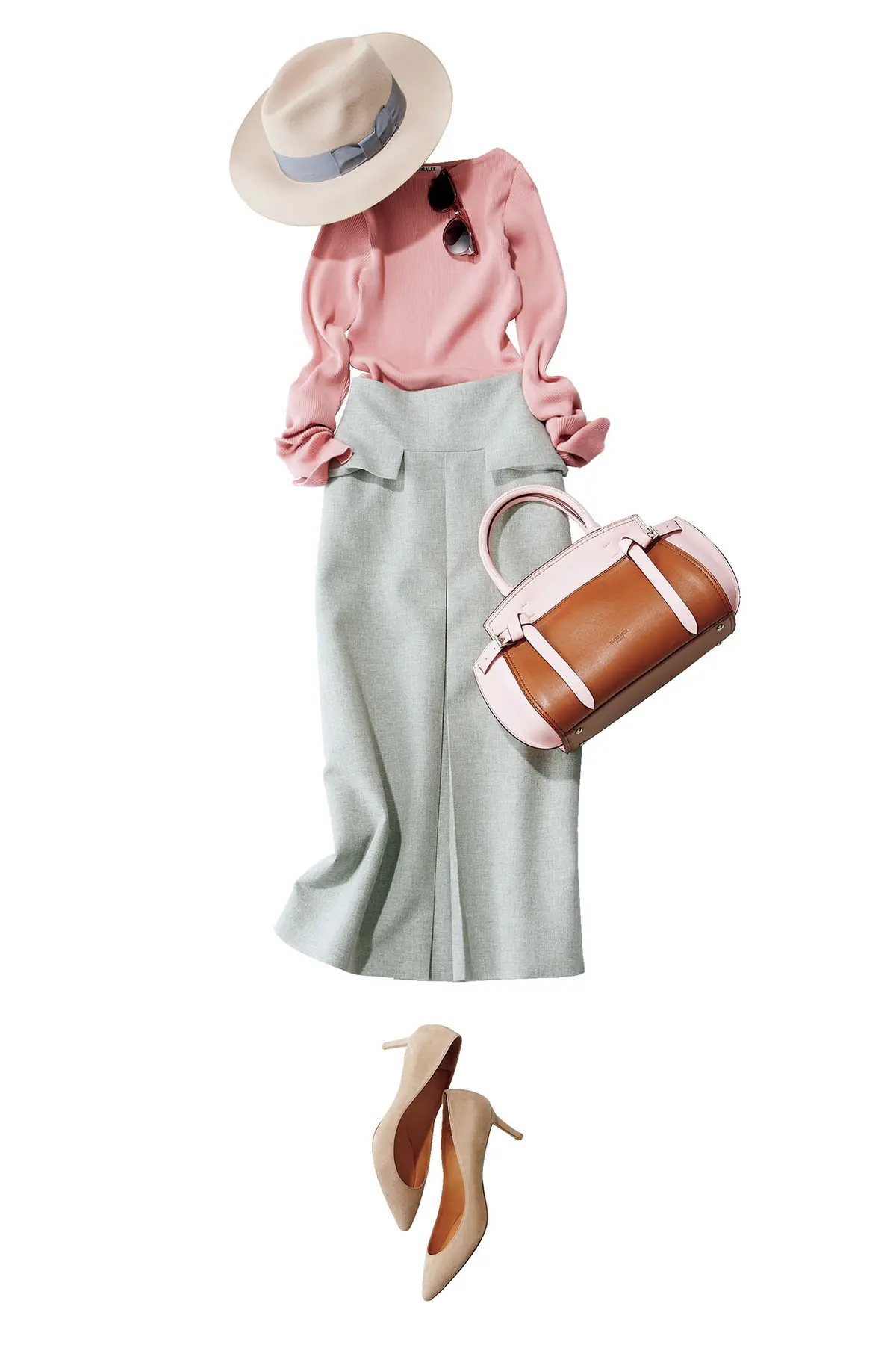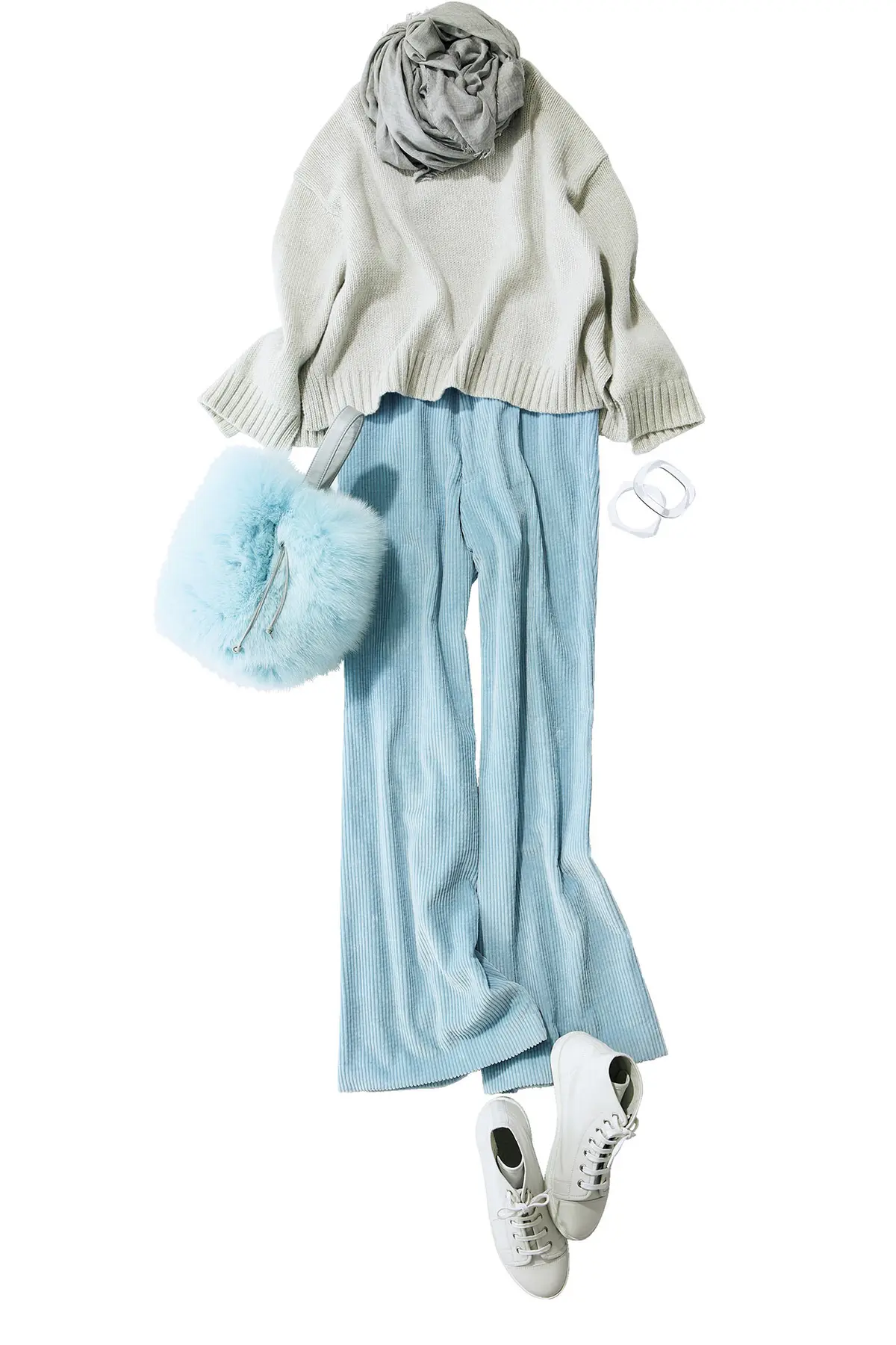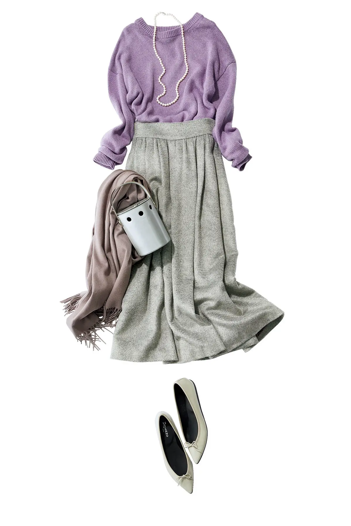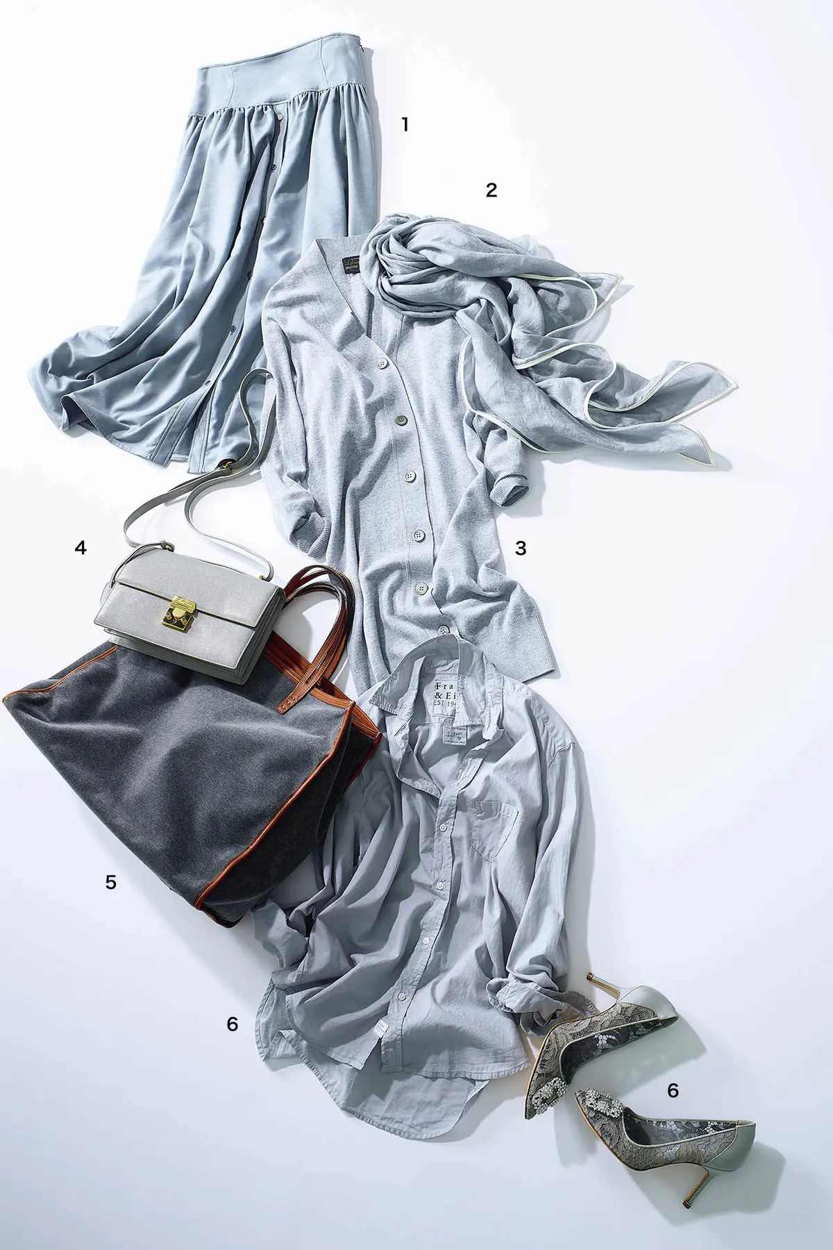 着るだけで洗練された印象になれる「ホイップグレー」は、今秋の基本となるカラー!シフォンやシルクサテン、ウールなど異素材ミックスで楽しむもよし、白やパステルカラーと合わせるもよし、と楽しみ方はいろいろ。重くなりがちな秋冬の着こなしを、軽やかで都会的なムードにしてくれる。肌映えよく、美女度もアップのホイップグレーコーデをぜひマスターして!