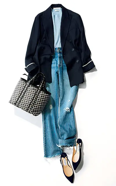 トラッドさは控えめに、薄手のしなやかな生地感と遊びの効いたディテールで、今どきに進化を遂げたネイビージャケットのしゃれ見え力を堪能!