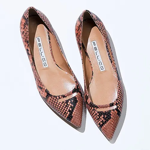 パイソンシューズは、特殊なレザーのように見えて、実はいろんなスタイルになじみやすい! 白、ベージュ系からカラフルなものまでバリエーション豊富にご紹介。