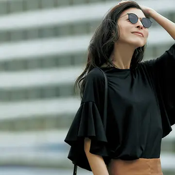 控えめにつやめく黒なら、夏でもライトに着られる