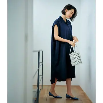 昨年秋に大ヒットとなったウールジャージー素材のワンピースを、春夏にふさわしい軽やかなコットン混素材で復刻。さらにエクラプレミアムでは特別に九分袖丈を別注。腕の気になる部分をさりげなくカバーし、写真のようにくしゅっとたくし上げてもおしゃれに決まる。裾にかけてゆるやかに広がる華シルエットは、アクセサリーしだいでどんなシチュエーションにもマッチ。