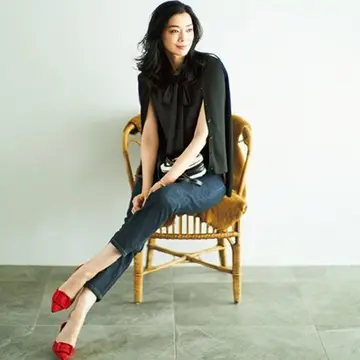 シャツ¥26,000/SANYO SHOKAI カスタマーサポート(マッキントッシュ ロンドン) デニムパンツ¥23,000/ゲストリスト(アッパーハイツ) ピアス¥160,000・ネックレス(短)¥170,000/ベルシオラ ネックレス(長)¥18,000/ショールーム セッション(マリハ) ストール¥34,000/ドゥロワー 六本木店(ジョンストンズ) バッグ¥28,000/オルサ(オルセット)