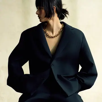 ストックホルム発のユニセックスなジュエリーブランドが手がける、アーティスティックなチョーカー。リサイクルされたスターリングシルバーにゴールドのヴェルメイユ(金をはりつける加工技術)が施され、モダンさの中にも上質感が漂う。「いつもの黒タートルにプラスするだけで上質なおしゃれ感が生まれます」。