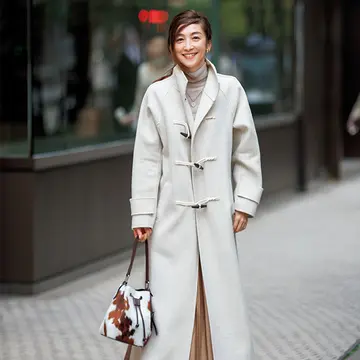 「暗めの色が多くなる冬は、意識して明るい色や白を取り入れるように。ふだんはカジュアルですがコートや靴、バッグは長く愛用できるものを少しずつ買い足して大事に使っています。お気に入りを身につけるとやっぱり気持ちがグンと上がりますね」。