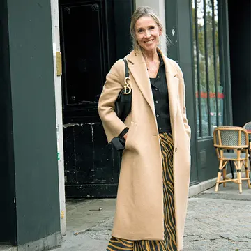 洋裁教室に通う彼女は素材やバランスを大切にする。コートの袖をまくり、ボーダーニットをチラ見せして女性らしい抜け感をプラス。タンク ルイ カルティエの一生モノの腕時計、ヴァージルアブローが手がけたルイ・ヴィトンのバッグで大人のエレガンスとエッジを効かせて。「ブーツはゴツめ。後ろ姿もばっちり決まるデザインです」。