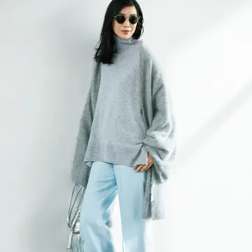 上品で透明感のある美しさを演出してくれるラベンダー。シャギーニットのふわふわとした質感とリラクシーなシルエットなら、アンサンブルもコンサバ見えせず今どきな着こなしへと導いてくれる。
