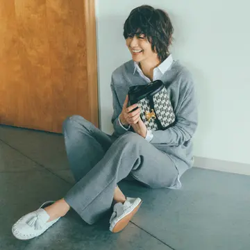 モデル・富岡佳子さんが“小さくてかわいいバッグ”を探し抜いた末に出会ったというボッテガ・ヴェネタの巾着バッグと、装いに今っぽさをプラスしてくれるジル サンダーのモードなフラット靴を主役にした“富岡流・春ファッション”をご紹介。