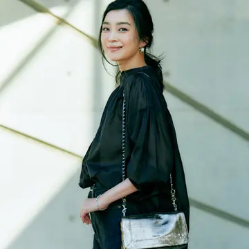 デニム「GABBIE JEAN INDIGO」¥47,000(ケイト)・ブレスレット(太)¥42,000・ブレスレット(細)¥37,000(ともにダイナソーデザイン)/以上ザ ストア バイシー 代官山店 靴¥89,000/ジャンヴィト ロッシ ジャパン(ジャンヴィト ロッシ) ジャケット¥49,000/カオス横浜(カオス) カットソー¥14,000/エイトン青山(エイトン) サングラス¥38,000/アイヴァン PR(アイヴァン) ピアス¥8,000(シー ミー)・バッグ¥98,000(ジェローム ドレフュス)/以上アッシュ・ペー・フランス