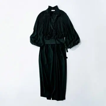 デザインに主役感のある上質素材のワンピースはシーンや季節を問わず、自信をもって着こなせる。