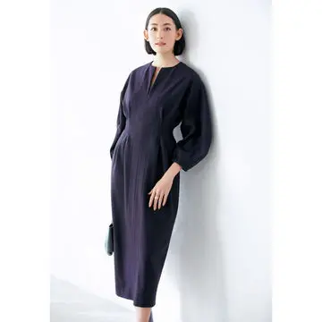冬はワンピースのインにニットを重ねて、また夏は一枚で着用しても二の腕がほっそり見えるゆとりのある袖口が優秀。