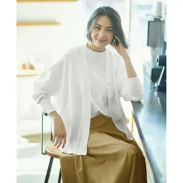 軽やかなシアー感とふんわりした女性らしいシルエット、甘くないダークカラーという組み合わせが使いやすく、ちょうどいい大人のかわいさを表現してくれる。通年ではける素材感も魅力。
