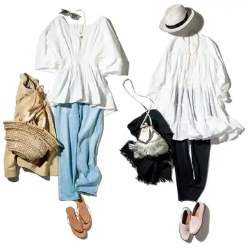 今季まずワードローブに加えたいのが、ちょい盛りディテールがポイントの「白ブラウス」。特にフロントコンシャスに作られたデザインなら、まとうだけで表情がぐっと優雅に。着映え感も、メイクアップ効果も叶えてくれる。