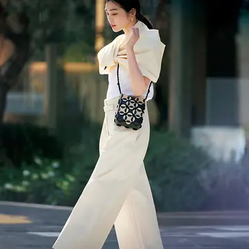 シンプルながら、とことん美しいリュクスなコレクションで高い支持を集めるザ・ロウ。上質な素材にこだわったポシェットは、タイムレスなたたずまいで、華奢なストラップとほどよいサイズ感が大人向き。白を効かせた旬のベージュトーンのコーディネートに、ひとさじの赤が上品に映える。