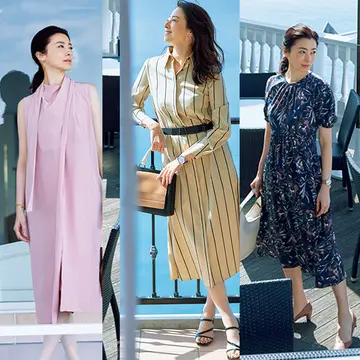 心も体も開放的な気分になる夏。リゾート気分を誘う、清涼感のあるブルーのシャツドレスで非日常感を楽しんで。富岡佳子さんが着こなす「ヴァレンティノ」のシャツドレスをご紹介。
