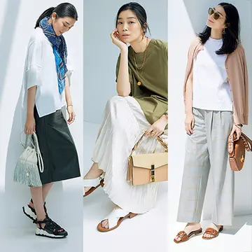 「白い靴を敬遠するかたもいらっしゃると思いますが、もったいない! 確かにお手入れは必要ですが、白ならではのクリーンさ、モダンさはやはり格別。パンプスよりも肌が出るサンダルのほうがトライしやすいはず」と語るスタイリストの大沼こずえさんに、白サンダルのおすすめを聞いた。