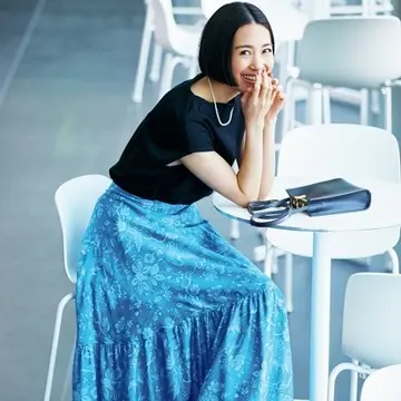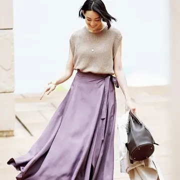 プラス1の小物使いでマキシ丈の薄艶スカートをこなれた表情に