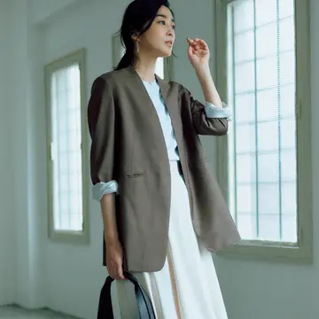 ラクちんな夏の装いに慣れてしまい、簡単なコーディネートでいいや、となっていない? そんな人にぴったりの「額縁ジャケット」をご紹介。手持ちの夏ものにも合わせやすく、秋本番までフル活用できるから、ぜひ手に入れて。