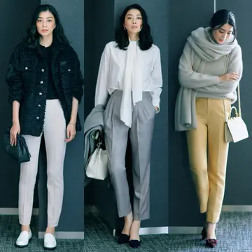 ベーシックゆえに女らしさが不足しがちなテーパードは、トップスの色や素材、デザインでフェミニンな要素を加え華やかな着映え効果をねらって。今回は、ジャケットと合わせるときの簡単なルールをご紹介。定番パンツを着映え&格上げ!