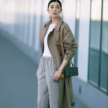 はくだけでこなれた印象になるリラクシーなドロストパンツは、スポーティ一辺倒にならないコーディネートが肝心。今回は、スタイリッシュに仕上がる「長めのジレ」とのコーデをご紹介。