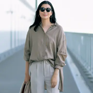 A.「メンズライクでカジュアルさもあるネイビーのパンツは、確かに体操服風に見える場合も(笑)。ワントーンコーデにすれば簡単に解決。ネイビーのジレをプラスしたり、上質なネイビーのニットを合わせてボトムとつなげると、統一感が出て洗練された印象になります」