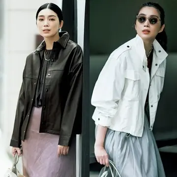 秋から冬のとば口にかけて、さっとはおれるショートアウターが大活躍。女らしいレースやツヤ素材のロングスカートと合わせて、今っぽく着こなせるブルゾンとレザージャケットを、スタイリストの徳原文子さんが厳選!