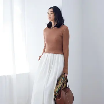自然な赤みを含んだコクのある濃いベージュは、華やかさと合わせやすさを兼ね備えた万能カラー。今季おすすめな旬カラーのピンクと濃いベージュの同系色を自然になじませるコーデをご紹介。
