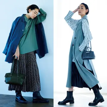 今年、注目を集めているボリュームのある厚底ショートブーツ。コートなど全身にボリュームが出る秋冬コーデとバランスがよく、洋服の魅力を倍増してくれるのが男前な厚底系ブーツ。黒を選べばさらにシャープさを添える。