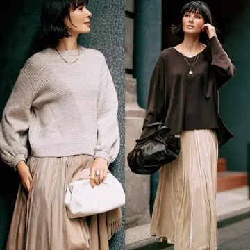体のラインを拾わないゆったり感が人気の半面、着膨れが心配な人も多いゆるニット。編み地に変化をつけ、身幅をほっそりと見せてくれる大人世代にうれしいニットはこちら!