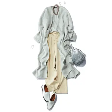 カットソーとのレイヤードで上品かつカジュアルなたたずまい