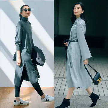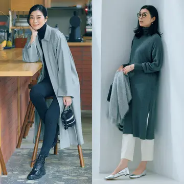 真冬はアウターを脱いだあとのおしゃれも重要。そんなときはワンピースが頼れるアイテムに。今回はスリットワンピースにテーパードパンツを重ねたきれいめコーデと、ニットパンツを重ねたカジュアルコーデをご紹介。